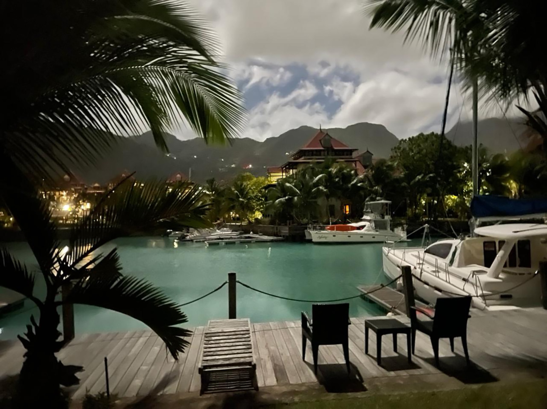 It is a luxury apartment of 125 m2 with 2 bedrooms for 5 persons. This apartment is on the ground floor with a nice private garden and a private pier. Exceptional view of the Mahé mountains, ideally located in the quiet inner basin, the best place on Eden Island. An Electric car golf is at your disposal with its own garage. The apartment is organized with refinement and luxury. Unlimited Internet, LCD TV, 50 TV channels, etc. ... 3 Kayaks are available with the apartment. 3 sun bed are in the garden. Gas BBQ in the terrace.