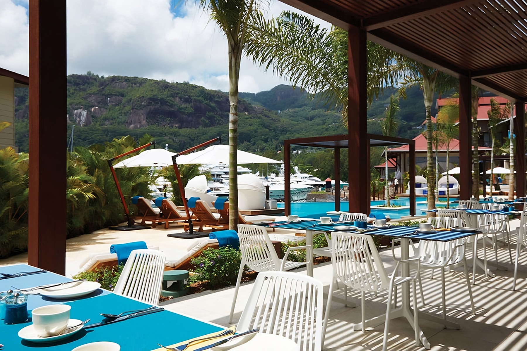 - The Blue Marlin. Located in the Eden Bleu hotel. Breakfast is served from 5:30. Serves delicate Seychellois cuisine as well as burgers and other great classics.